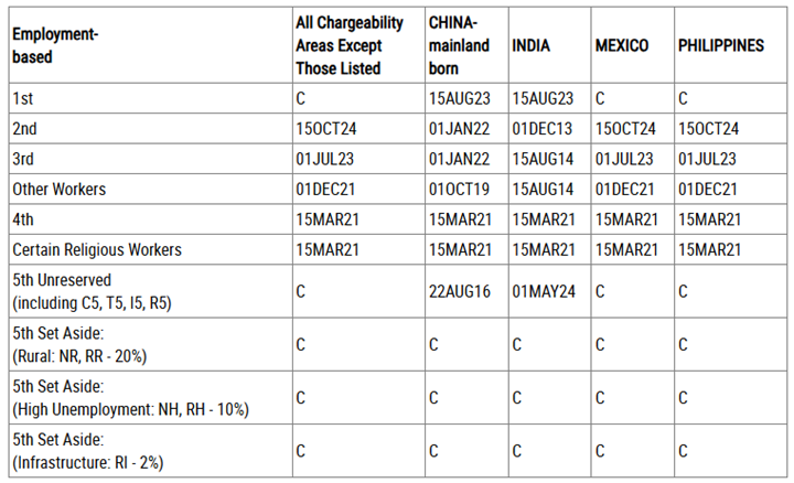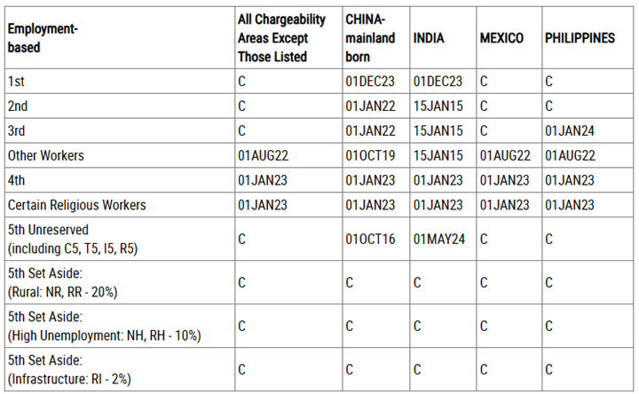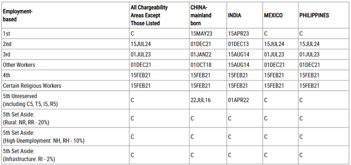 (E, H-1B, H-2B, H-3, L-1, O-1, Employment Based Permanent Residency